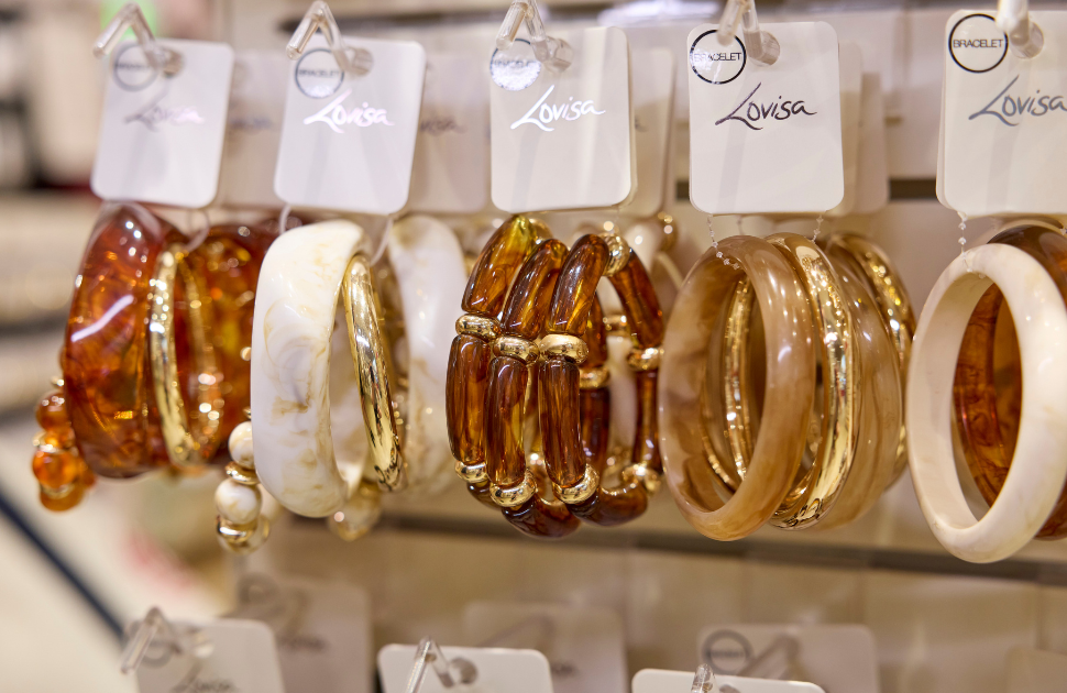 Lovisa continues the resort‑wear trend with bangles in gold tones, warm browns and marble effects. Think easy layering pieces that add instant polish to any outfit.